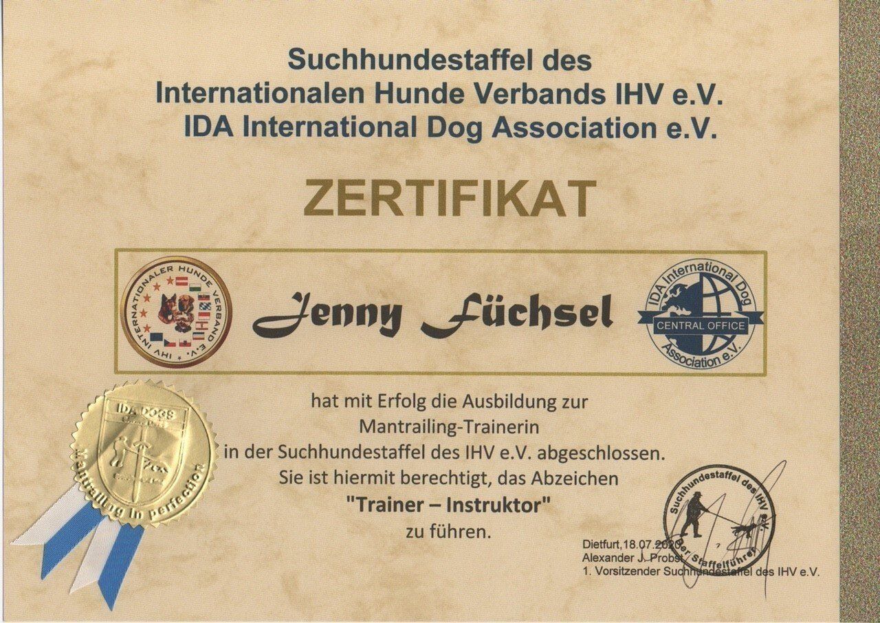 - Zertifizierte Scent-Detection-Trainerin (Spürhundeausbildung)